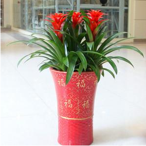 鸿运当头寓意大吉大利、鸿运当头、吉星高照,一直是很受欢迎的年宵花卉之一;它株型美观大方,宽带形的硬革质叶片浓绿光亮、常年郁郁葱葱,鲜红的穗状花序落落大方、清秀雅丽,绿叶红花交相辉映,极富观赏价值;并且它还是很好的风水植物,有聚财纳福、生旺化煞等风水作用;家里养上几盆,典雅又大方,开花就有好兆头。