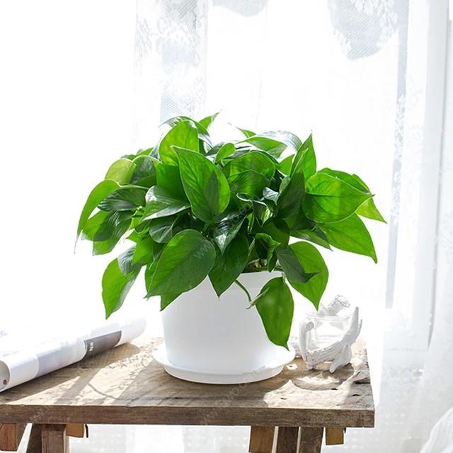 绿萝,是最常见的净化空气植物之一,它是一种生长非常迅速的植物,可以很好的去除室内的甲醛,并且也是非常棒的室内盆栽植物。绿萝具有很好的抗病虫能力,对环境的适应能力很强,能够在低光照的环境下生长,非常容易繁殖,不需要经常打理。为了避免根系腐烂,注意避免土壤积水。
