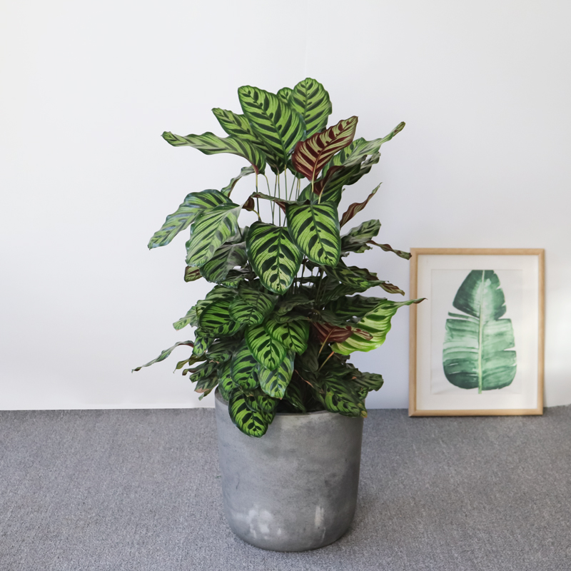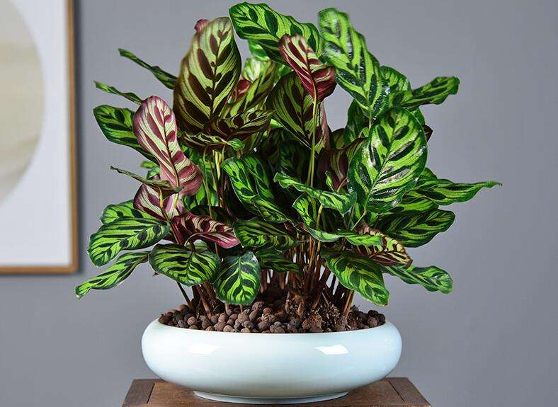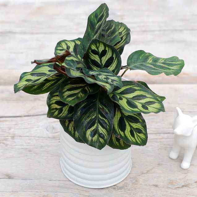 孔雀竹芋叶面上的墨绿与白色或淡黄相间的羽状斑纹很有质感,显得清新洁净。放置于办公区、客厅等地都是不错的选择。另外,白天叶片舒展,晚间折叠起来的特性,更加惹人喜欢。那我们应该如何正确的养护孔雀竹芋呢?